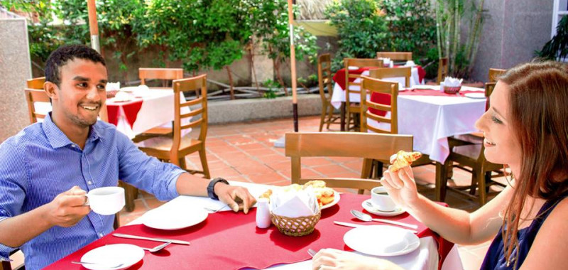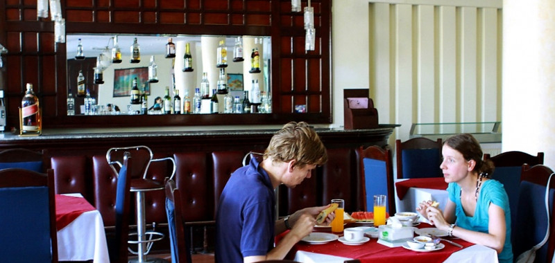 Nhà hàng và quầy bar của khách sạn nằm ở tầng trệt có hướng nhìn ra hồ bơi với sức chứa đến 100 khách. Quý khách sẽ được thưởng thức những món ăn Âu, Á và đặc biệt là các món ăn đặc sản nổi tiếng của phố Cổ Hội An trong không khí lịch sự và thân thiện của nhà hàng.