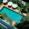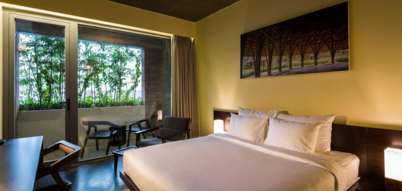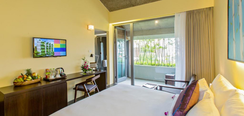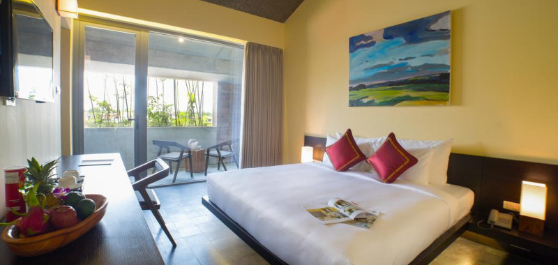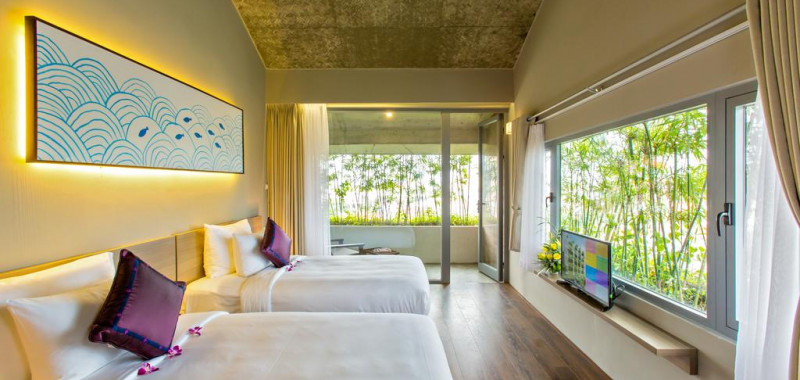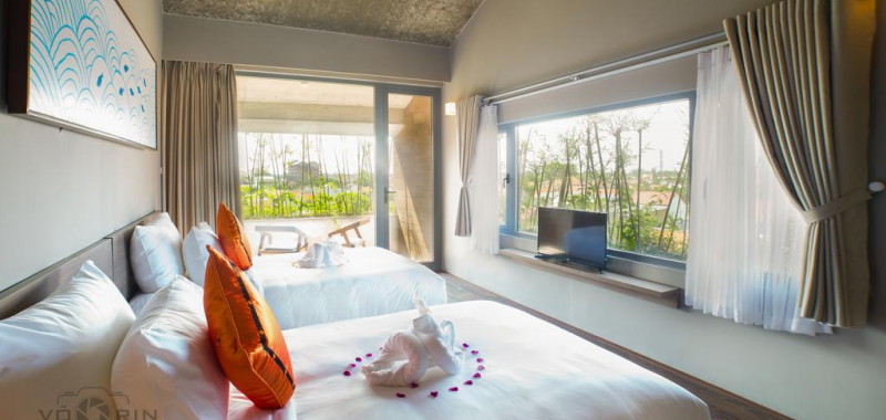 Phòng có cửa sổ và ban công với tầm nhìn toàn cảnh hồ bơi cũng như khu vườn, phòng tắm không gian mở đi kèm góc tắm vòi sen mở, áo choàng tắm, dép cùng máy sấy tóc. Các tiện nghi trong phòng bao gồm minibar, điện thoại, truyền hình vệ tinh màn hình phẳng với các kênh quốc tế.