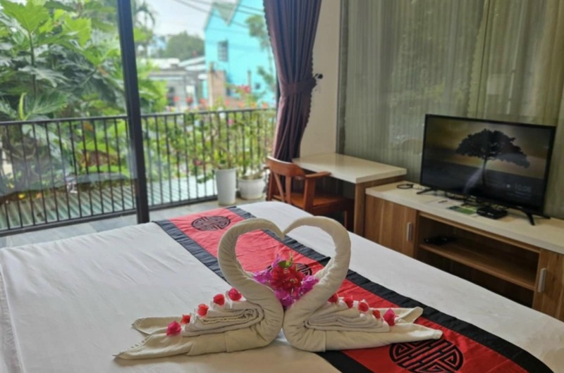 Đến với Milk Fruit Homestay, quý khách sẽ được tận hưởng không gian sống yên tĩnh, thoải mái. Phòng giường đôi có ban công rộng rãi với độ rộng 26m2, nội thất tông gỗ ấm áp đậm phong cách Đông Dương. Phòng sạch sẽ, không kém phần sang trọng, trang bị đầy đủ tiện nghi như: tủ quần áo, điều hòa nhiệt độ, tủ lạnh, đồ dùng cá nhân... Phòng có thiết kế cửa kính hướng ra không gian mở. Mỗi phòng đều có ban công, du khách có thể ngắm nhìn khung cảnh xung quanh, bao quát khu trung tâm nhộn nhịp nhất của An Bàng - Một trong số những bãi biển lọt Top bãi biển đẹp nhất thế giới.