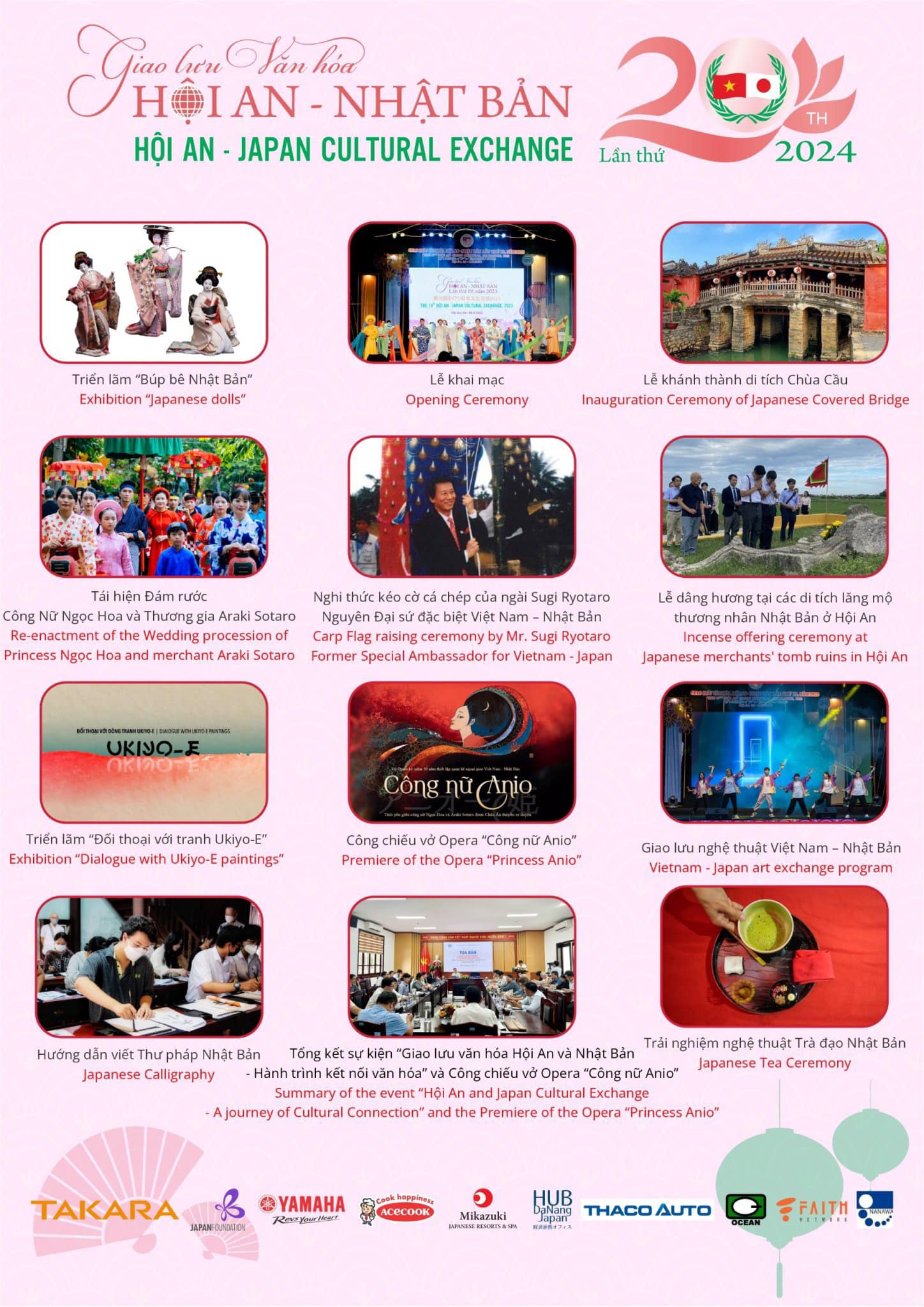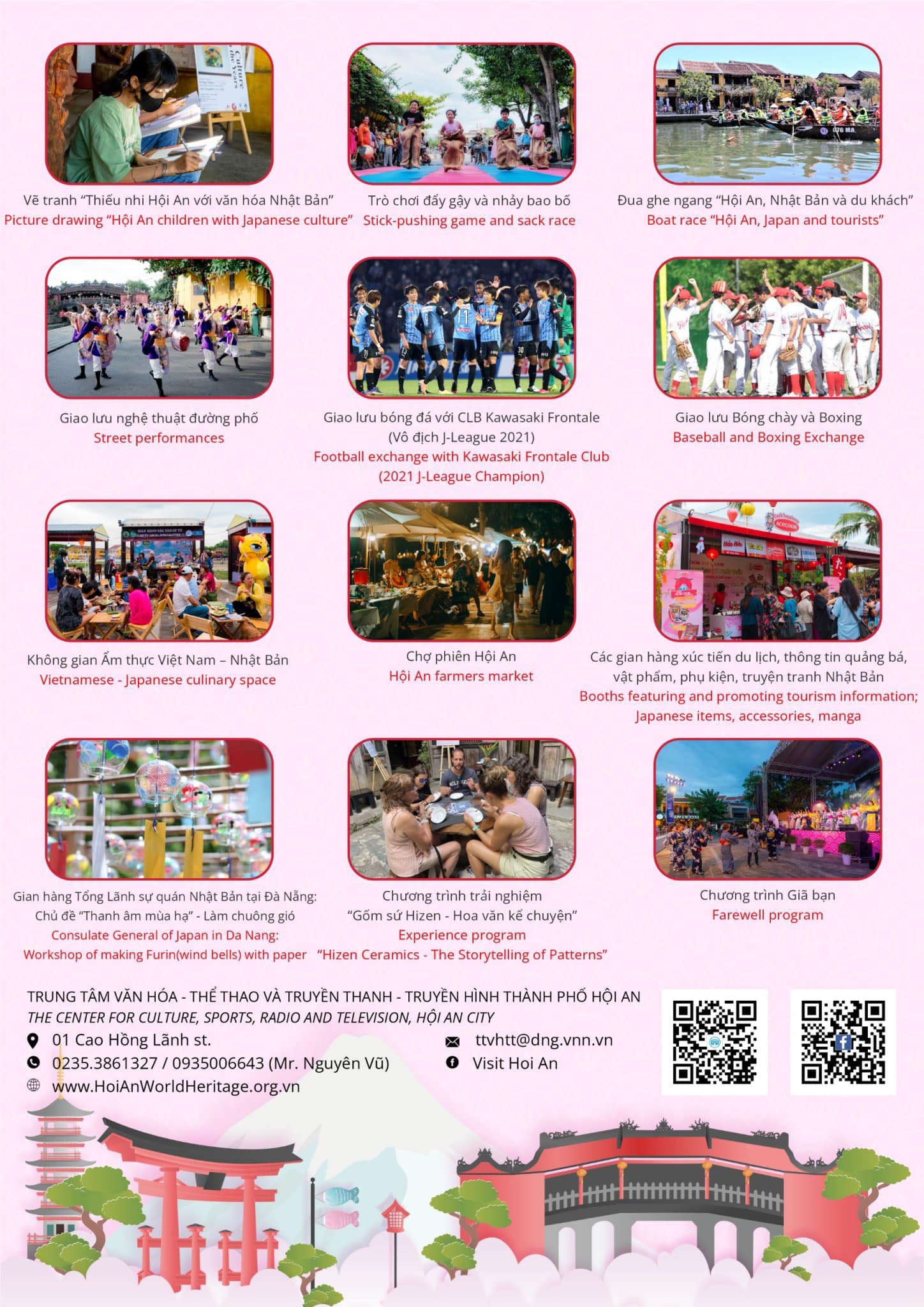 Sự kiện “Giao lưu Văn hóa Hội An - Nhật Bản năm 2024” lần thứ 20 không chỉ là cơ hội để bạn tìm hiểu về sự giao thoa văn hóa giữa Việt Nam và Nhật Bản mà còn là dịp để bạn trải nghiệm những hoạt động văn hóa và thể thao đặc sắc.