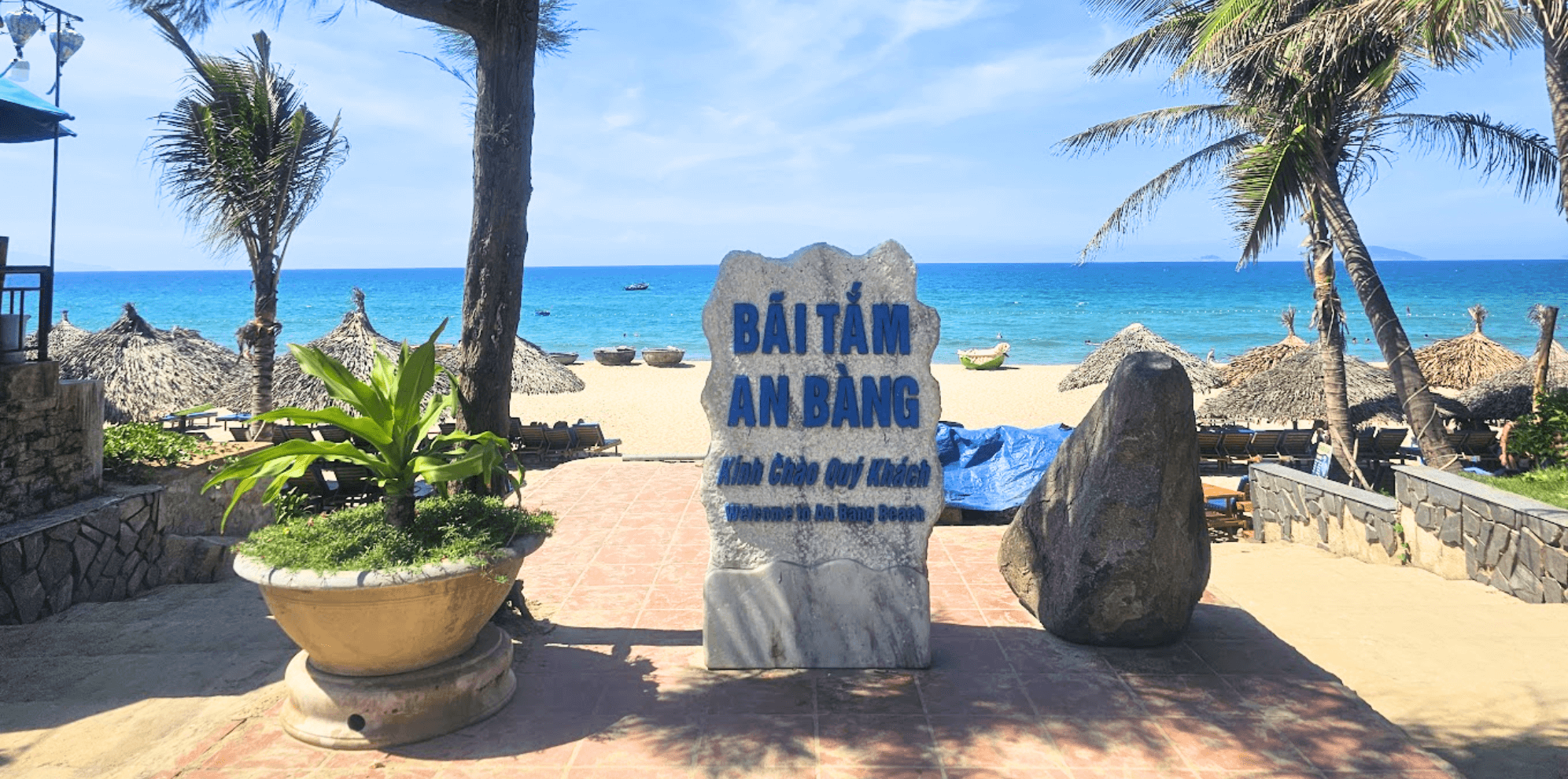 An Bàng nổi bật với vẻ đẹp tinh tế hòa quyện giữa cảnh vật và thiên nhiên. Bãi cát trắng trải dài bên bờ biển xanh ngọc bích tạo nên một bức tranh thơ mộng.