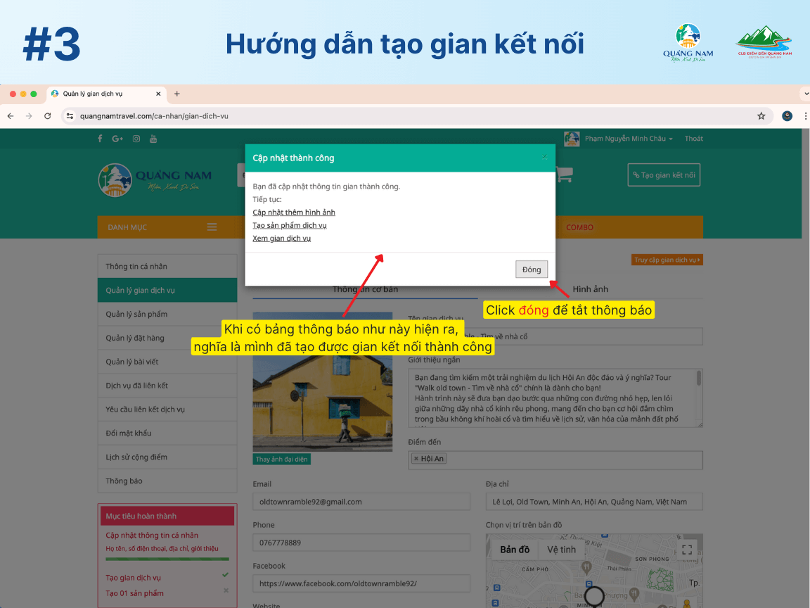Chúc bạn thành công và có nhiều khách hàng quan tâm đến Gian kết nối của mình trên QuangnamTravel. Hy vọng hướng dẫn này sẽ giúp ích cho bạn.