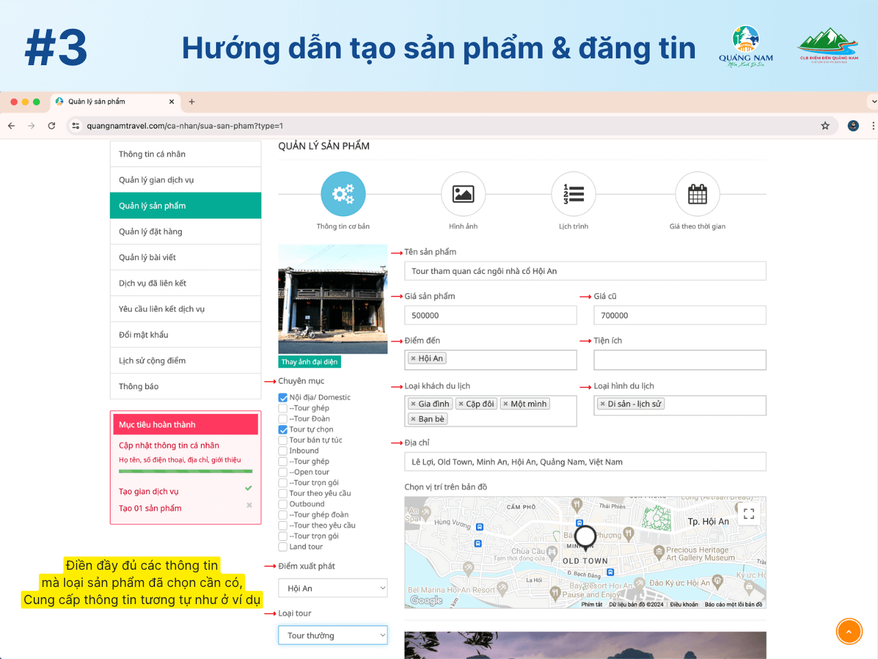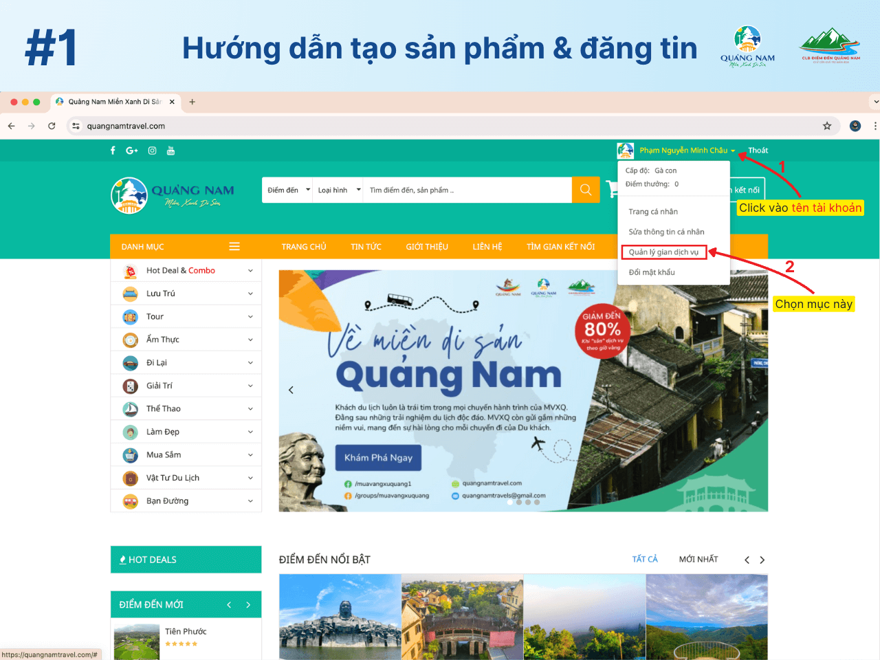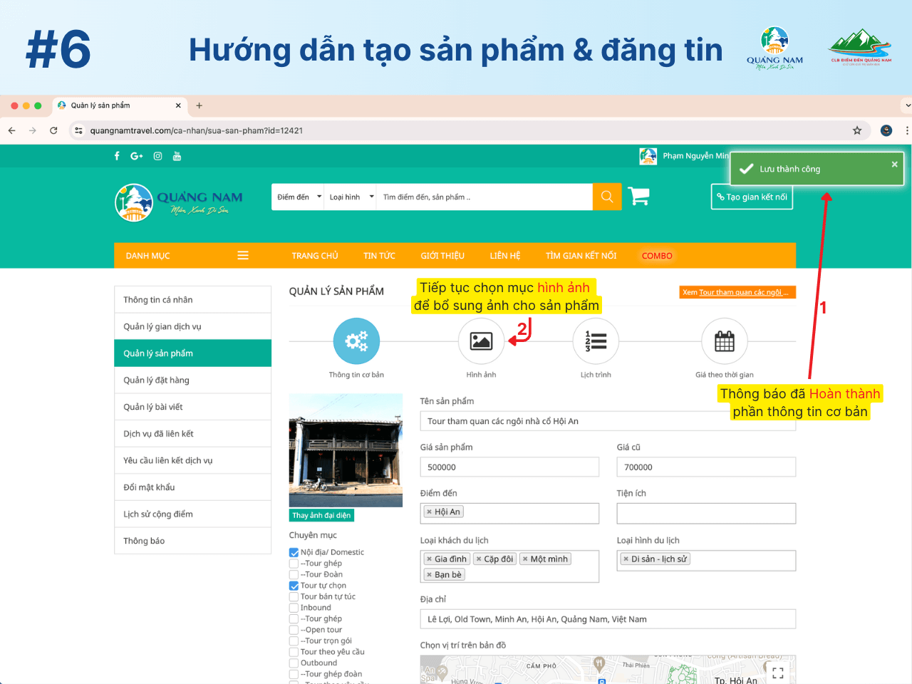 Hướng dẫn tạo sản phẩm và đăng tin trên Quangnamtravel.com