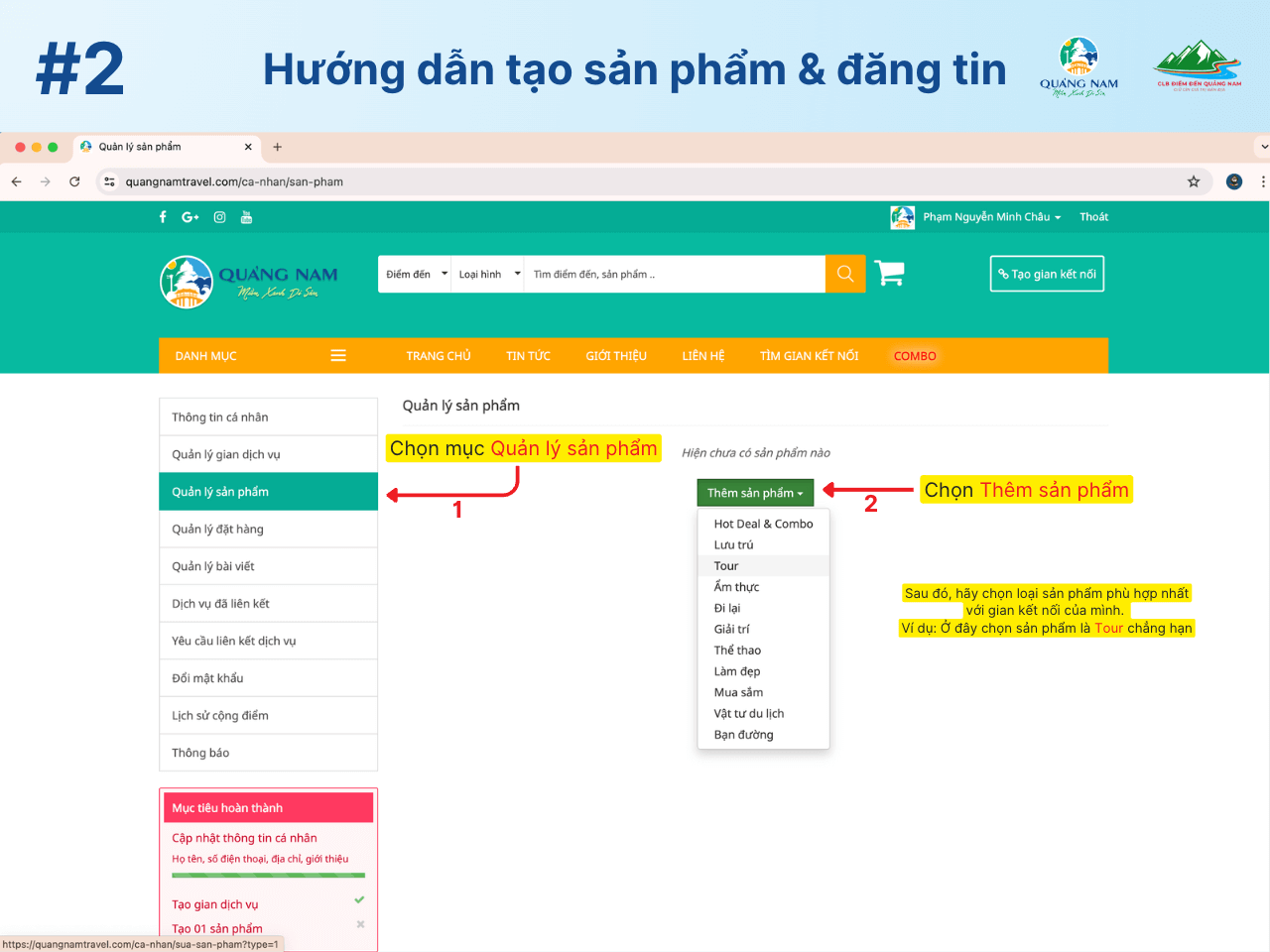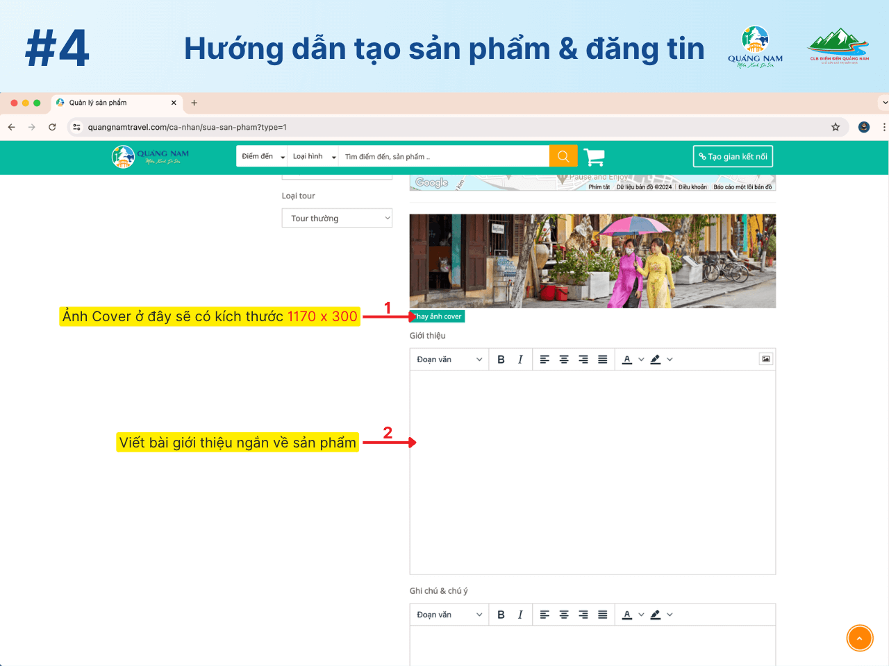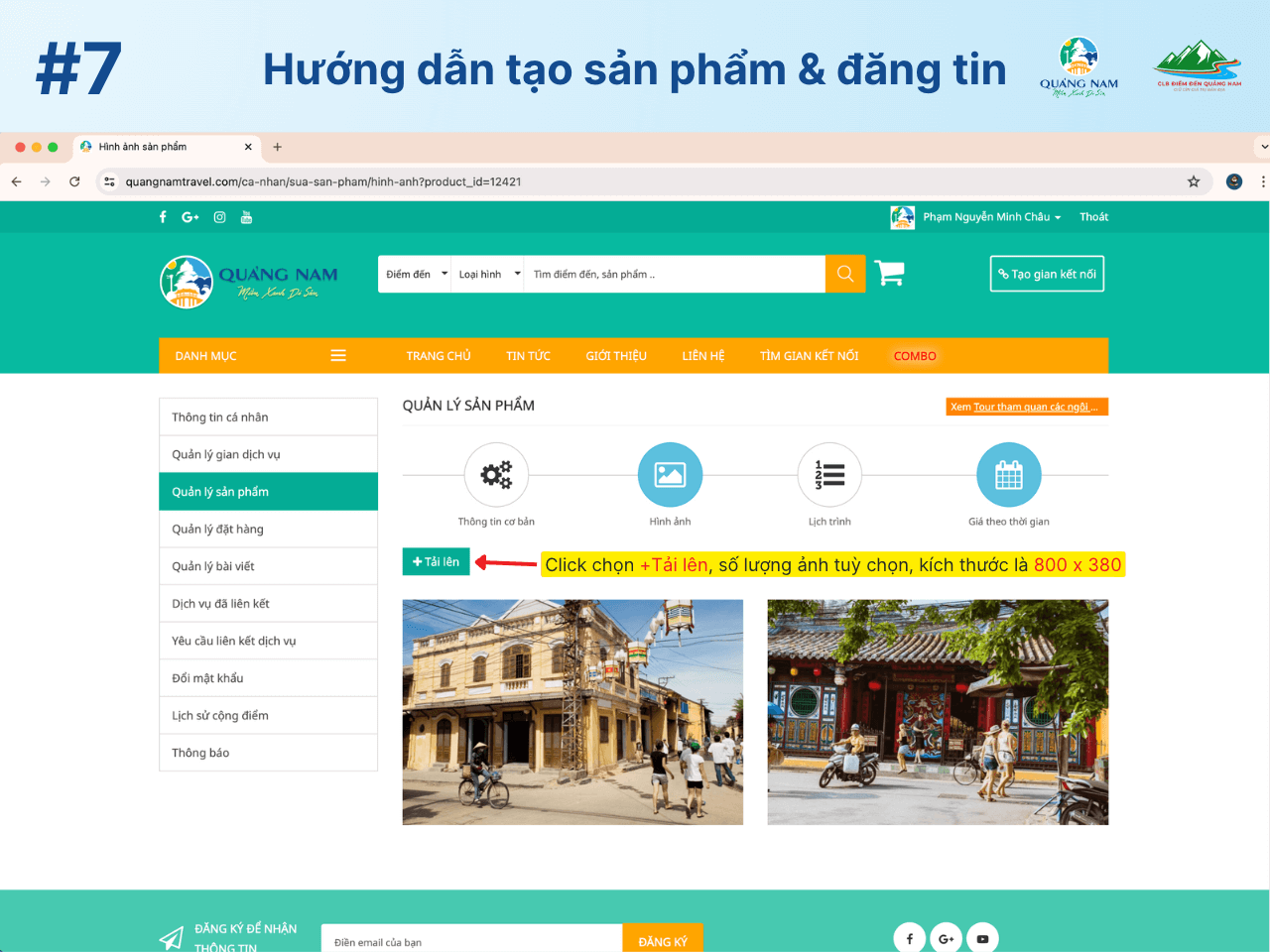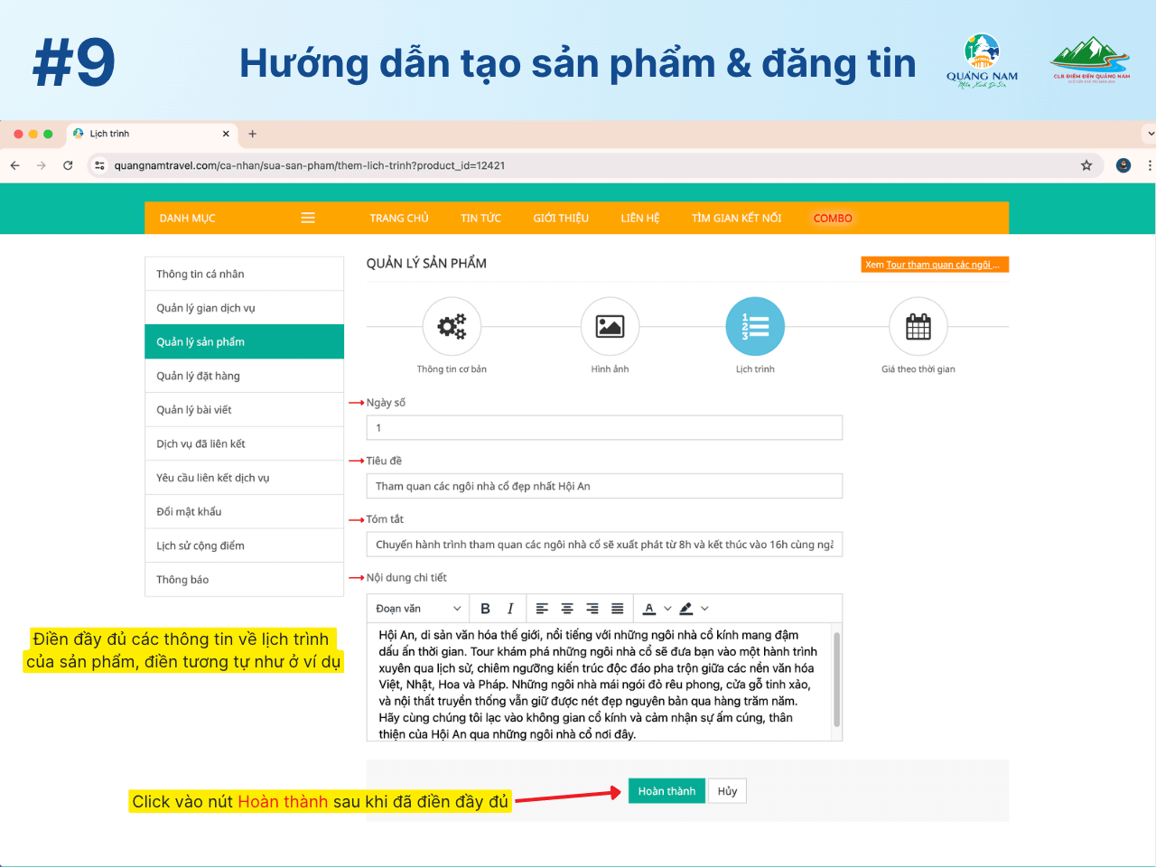 Hướng dẫn tạo sản phẩm và đăng tin trên Quangnamtravel.com