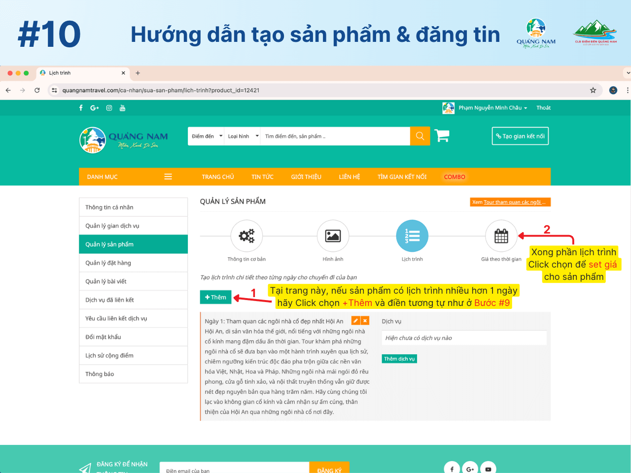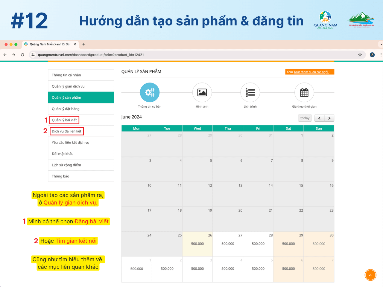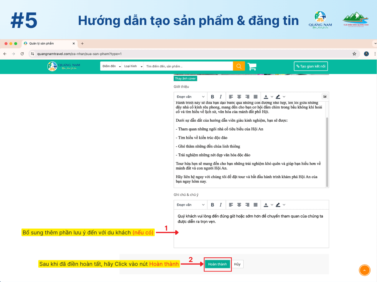 Trên đây là hướng dẫn chi tiết 12 bước để đăng tải và quản lý sản phẩm trên QuangnamTravel. Đồng thời, bạn cũng có thể dễ dàng chia sẻ tin tức và bài viết độc đáo của riêng mình để thu hút sự chú ý từ cộng đồng trên website.