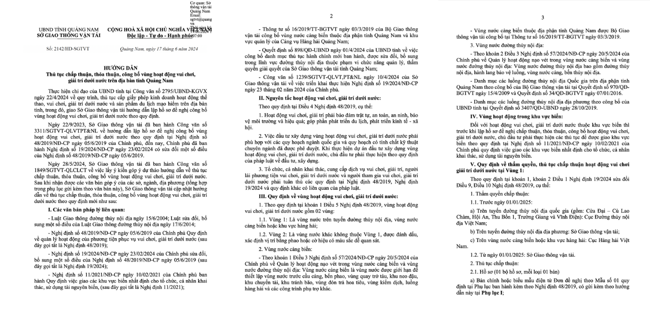 Tỉnh Quảng Nam, với bờ biển dài và nhiều điểm du lịch nổi tiếng, đã đặt ra nhiều quy định và thủ tục liên quan đến hoạt động vui chơi, giải trí dưới nước nhằm bảo vệ môi trường, đảm bảo an toàn và phát triển bền vững ngành du lịch. Dưới đây là một tổng quan về các quy định và thủ tục quan trọng: