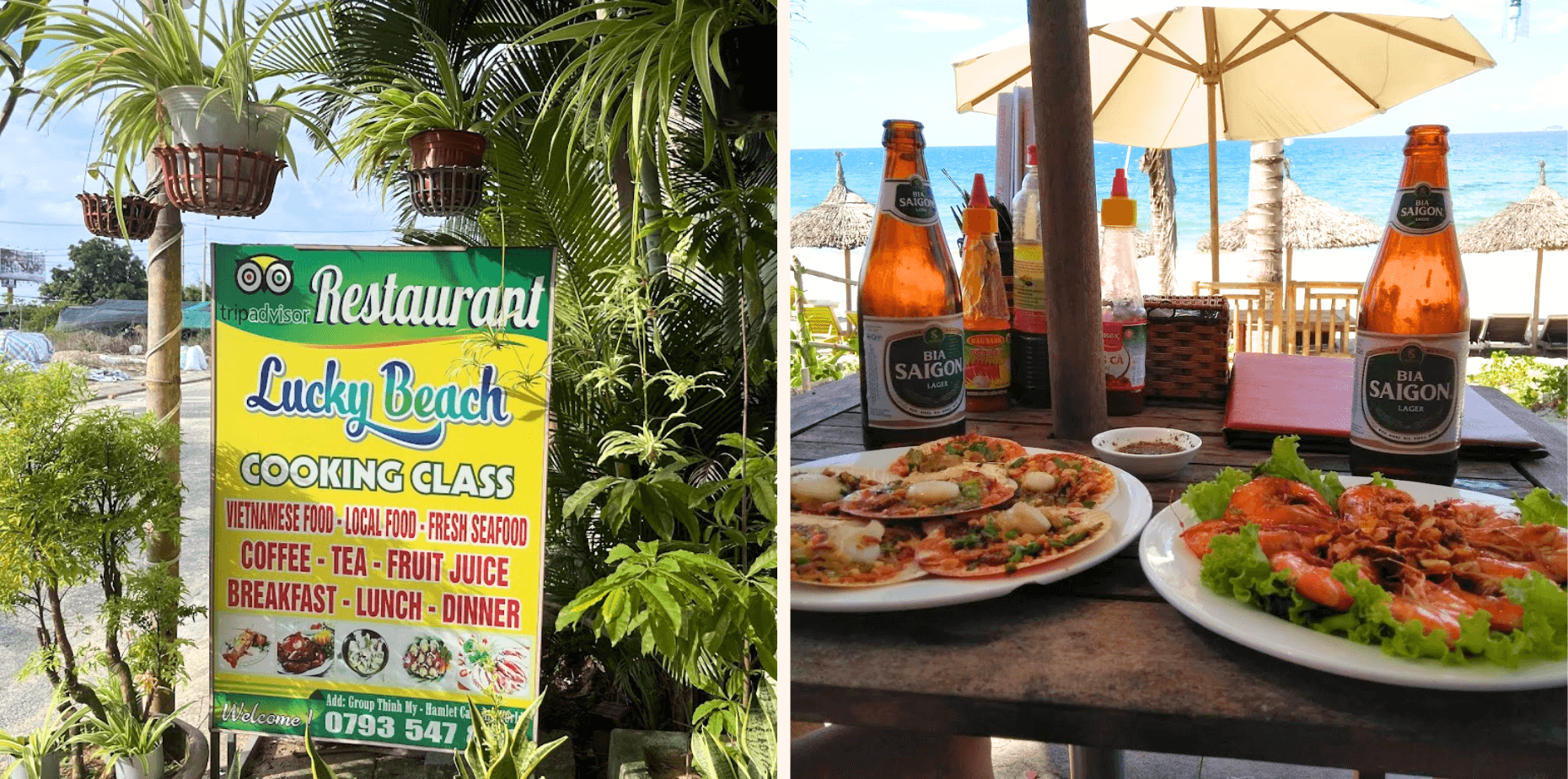 Tại đây, bạn có thể thưởng thức các món hấp dẫn như: Tôm hấp, hàu nướng mỡ hành, sò điệp rang me, chíp chíp xào sả ớt, mực nướng và lẩu hải sản. Lucky Beach hứa hẹn sẽ làm bạn hài lòng với hương vị đậm đà và không gian mát mẻ.