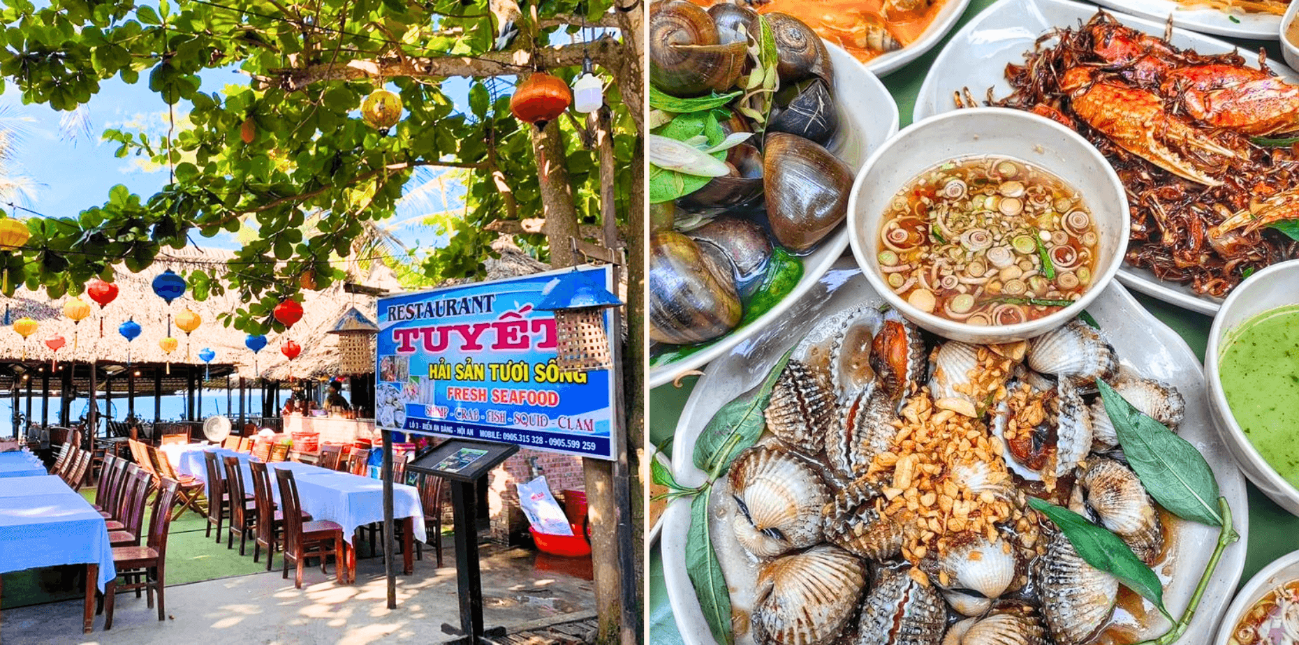 Đang phân vân không biết ăn gì ở biển An Bàng ghé ngay nhà hàng hải sản Hội An Seafood Tuyết đã trở thành biểu tượng ẩm thực biển với hơn 20 năm hình thành và phát triển. Đây là địa chỉ yêu thích của cả du khách và người dân địa phương nhờ không gian thoáng đãng và các món hải sản tươi ngon, chất lượng.