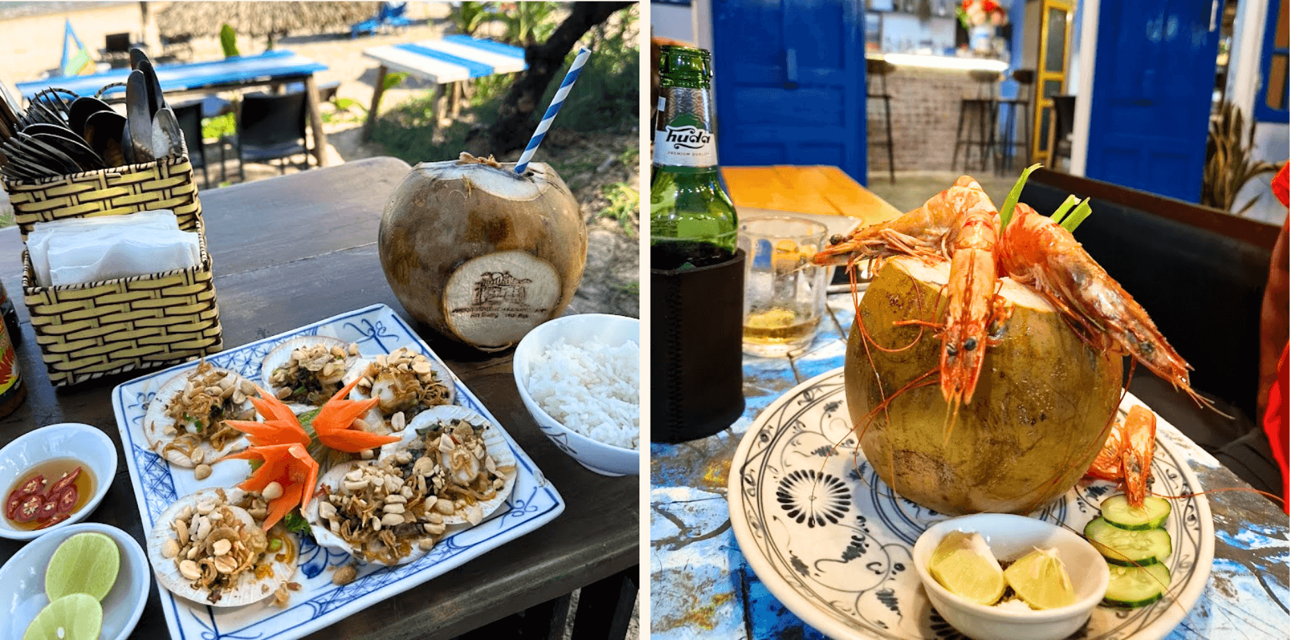 Tại đây, bạn không chỉ có thể thư giãn đọc sách, lắng nghe tiếng sóng vỗ và tận hưởng cảm giác trong lành mà còn được thưởng thức những món hải sản tươi ngon đặc trưng của Hội An. Từ tôm, cá, mực đến bạch tuộc và các loại ốc, mỗi món ăn đều được chế biến khéo léo, giữ nguyên hương vị tươi ngon của biển.