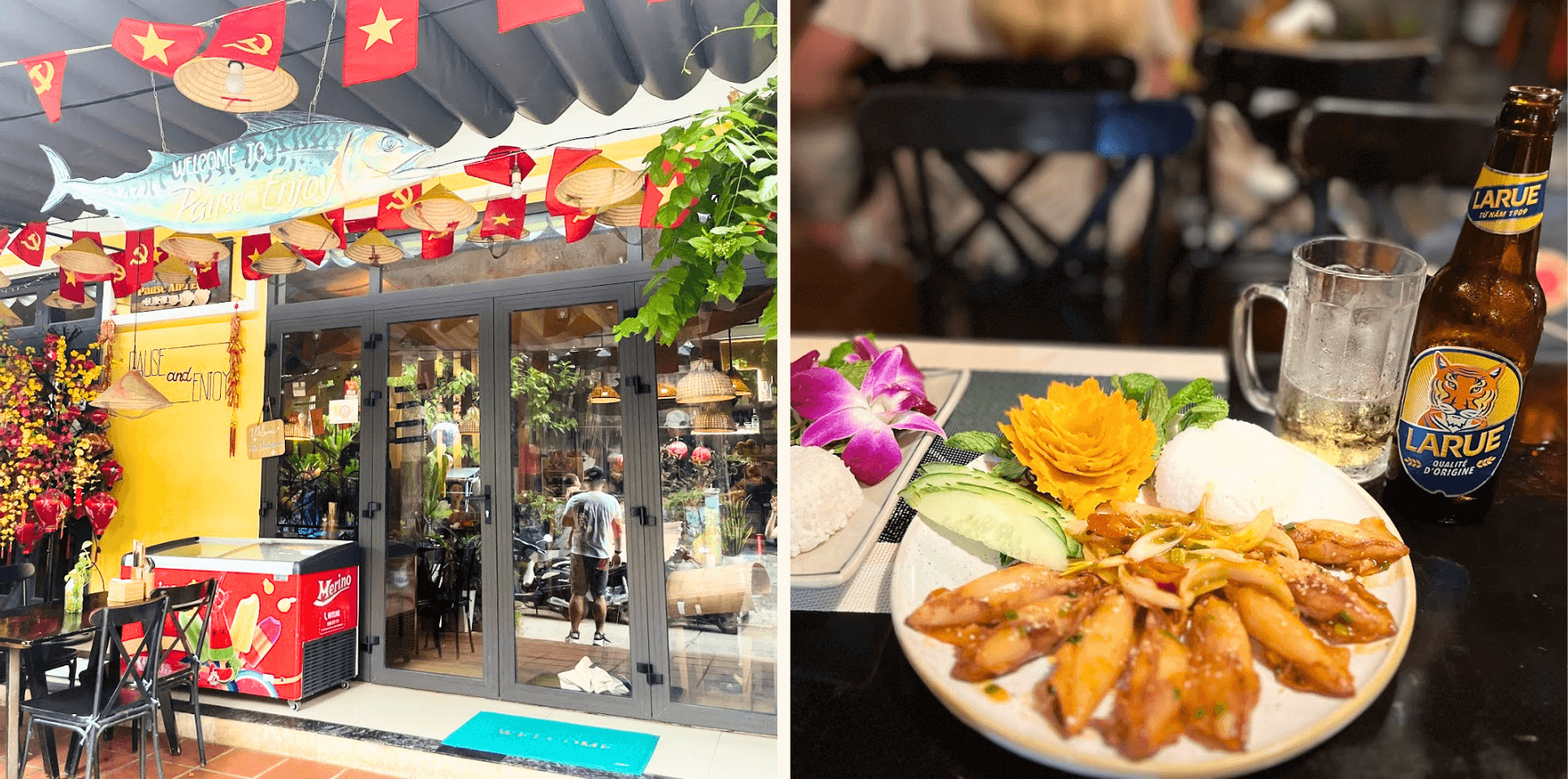 Nhà hàng Pause and Enjoy - tọa lạc ngay trung tâm Chợ đêm Hội An, là điểm đến lý tưởng để bạn thưởng thức những món ăn Việt chính thống trong không gian sang trọng và ấm cúng. Tại đây, bạn sẽ được trải nghiệm ẩm thực Hội An đích thực với nguyên liệu hải sản tươi ngon, được chọn lọc từ các vùng biển lân cận.